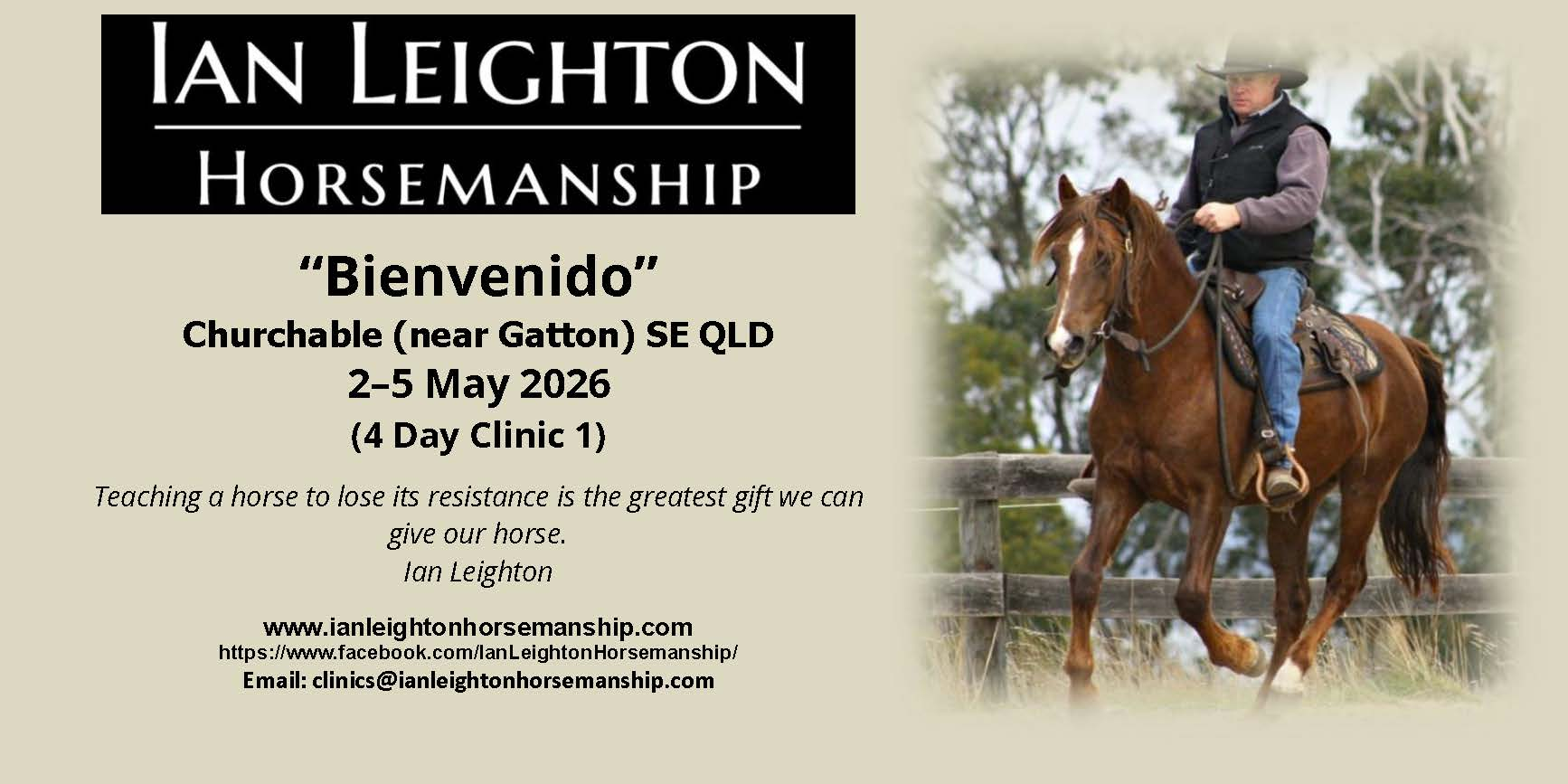 QLD (SE) Churchable "Bienvenido"(near Gatton) 4 Day Clinic (1) 2-5 May 2026